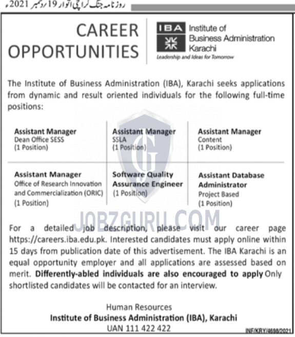 Today Jobs, this page inform you about Institute of Business Administration Latest Jobs 2021 Published today in Leading Newspaper for Males and Female Applicants. Institute of Business Administration is looking the services of Excellent and Experienced applicants for the posts given below From Pakistan Nationality Holders.